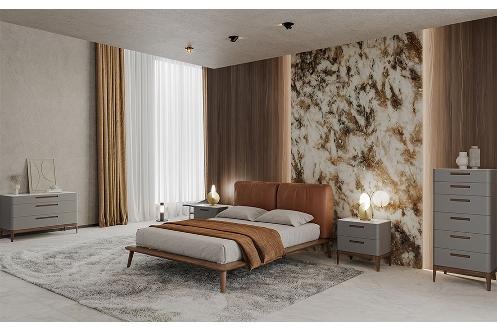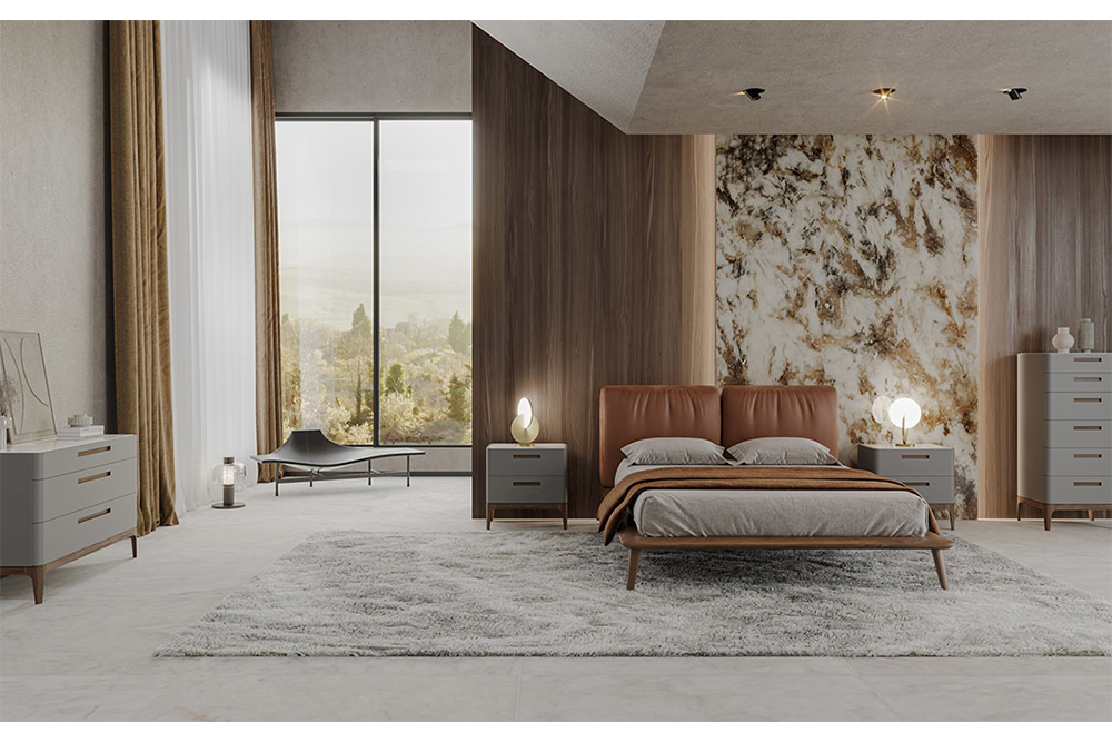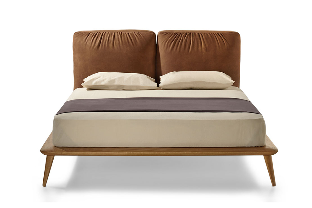 Κρεβάτι με εσωτερικό μεταλλικό σκελετό και εξωτερικό σκελετό από μασίφ ξύλο με λείες άκρες & επένδυση δύο μαξιλαριών.