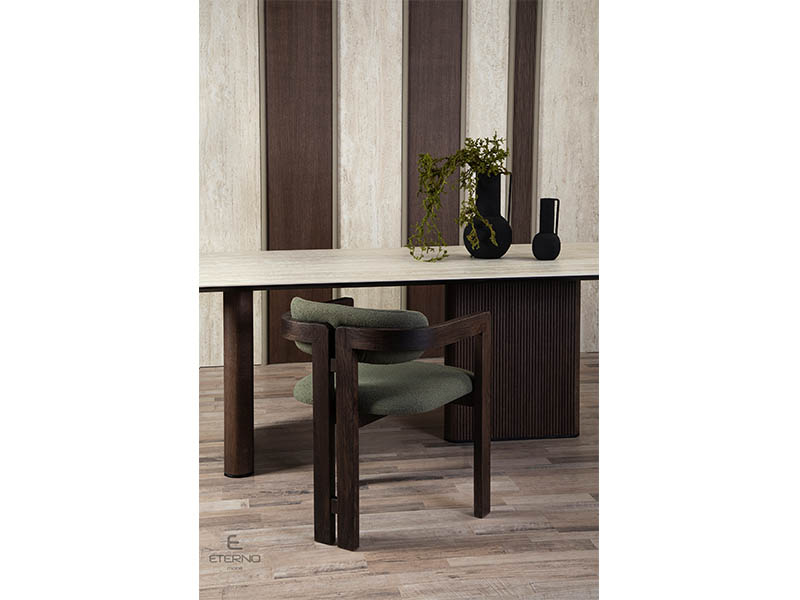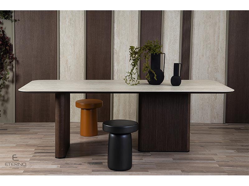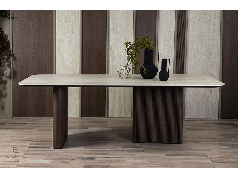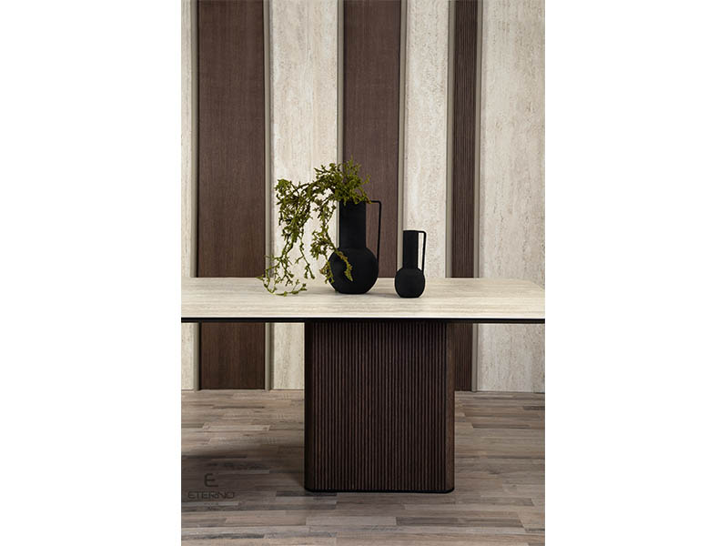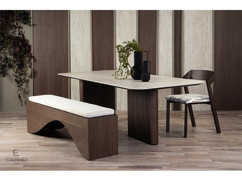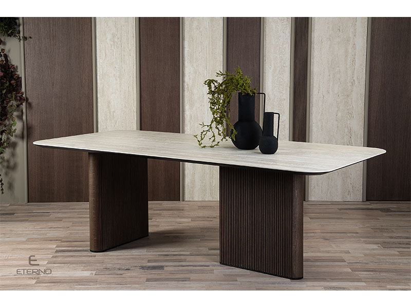 Η τραπεζαρία “Split” αποτυπώνει την μοντέρνα αισθητική. Ο συνδυασμός της κεραμικής επιφάνειας με το γραμμικό σxέδιο της βάσης μας προσφέρει μια ευχάριστη οπτική εντύπωση.