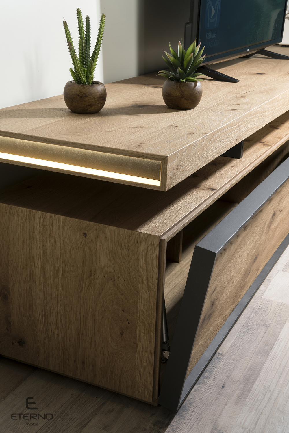 Η σύνθεση Albero είναι κατασκευασμένη από ξύλο ρουστίκ και σε συνδυασμό με την λάκα ματ και τους κρυφούς φωτισμούς θα δώσει μια ξεχωριστή νότα στο χώρο σας.