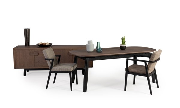 Η τραπεζαρία Gallo αναδεικνύει την φυσική ομορφιά του ξύλου. Με οβάλ στοιχεία στο σχεδιασμό του καπακιού αλλά και της βάσης, δημιουργεί ένα σταθερό αλλά και μοντέρνο αποτέλεσμα που αναδεικνύει την φυσικότητα των υλικών του.