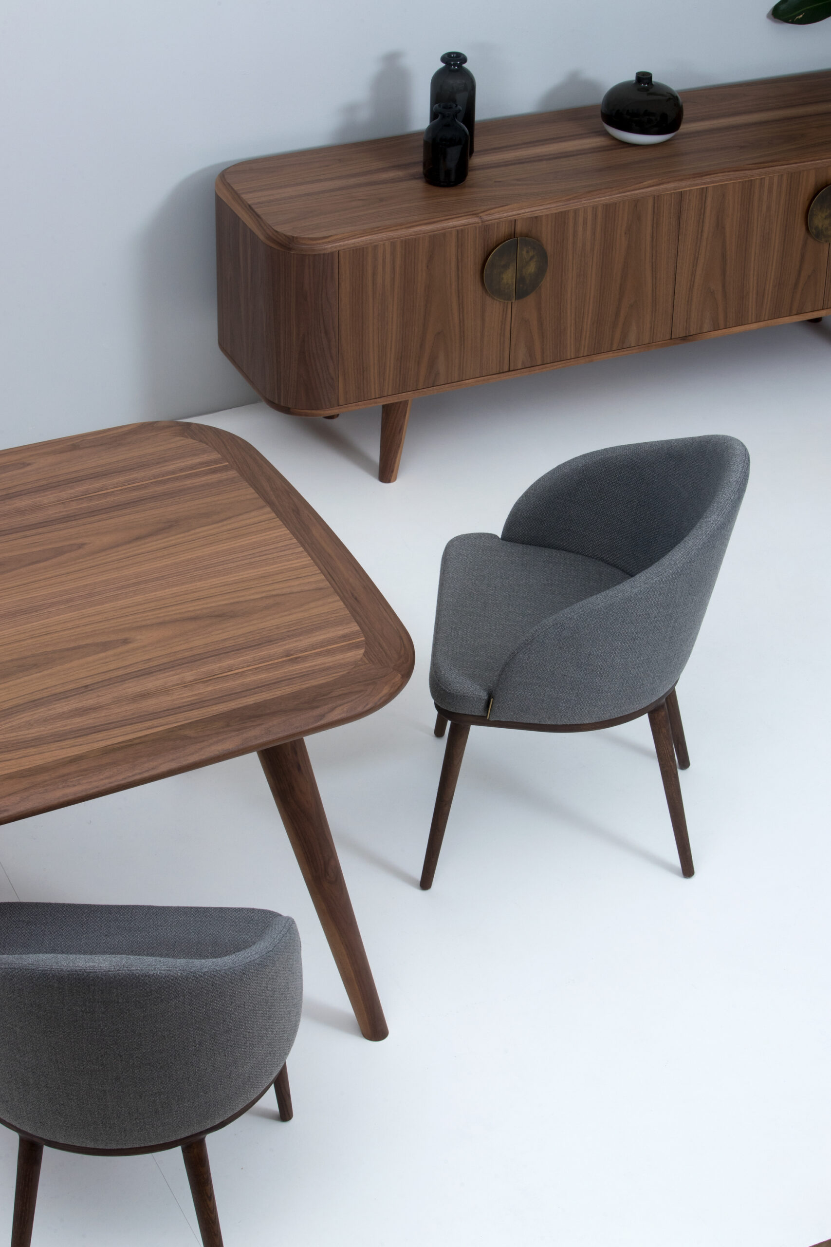 Η ποιοτική κατασκευή και ο πραγματικά σύγχρονος σχεδιασμός αναδεικνύουν ένα τραπέζι για κάθε χώρο που θέλει να προσθέσει minimal στοιχεία στον χώρο. Οι λεπτές γραμμές και η υπέροχες καμπύλες δημιουργούν μία οικεία αίσθηση και φυσικά υλικά όπως η Αμερικάνικη καρυδιά τις αναδεικνύουν με τον καλύτερο τρόπο. Είναι κατάλληλη για οικιακή και επαγγελματική χρήση.