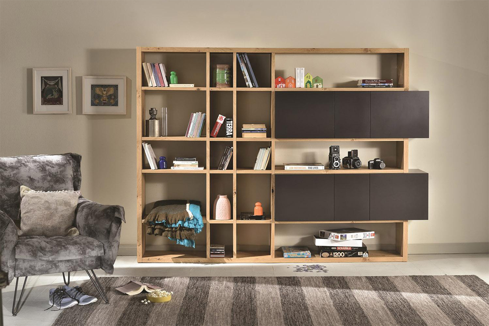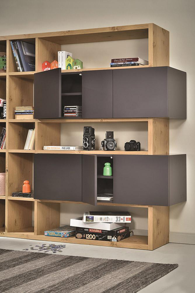 Η βιβλιοθήκη Ennea κατασκευάζεται από ξύλο δρυς σε συνδυασμό με λάκα. Δυνατότητα επιλογής διαστάσεων και αποχρώσεων. Διάσταση 2,46*1,83*0,40